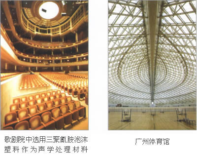 用綠寰宇多型號吸聲隔熱泡綿板制作的懸掛吸音板系統(tǒng)被應用在射擊場、體育場和溜冰場等公共建筑以減少噪音。其高度的吸音能力、更輕的重量、更高的防火安全性能以及簡潔的索式結構施工技術在這些應用中體現(xiàn)的十分充分。 以綠寰宇多型號吸聲隔熱泡綿板為支撐的具有裝飾用途的聲學板材、懸掛吸聲體、金屬吊頂板材對聲學效果具有顯著的改進效果。更重要的是,這種方式會啟發(fā)人們設計的靈感。
